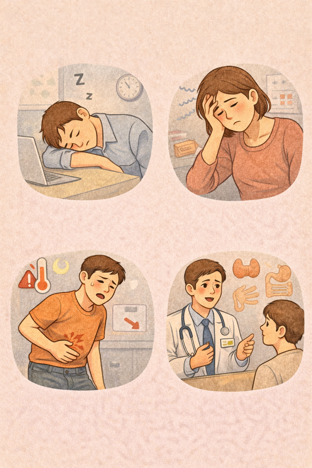 신체적 원인은 다양한데, 공통점은 “피로 외에도 몸의 힌트가 함께 나타나는 경우가 많다”는 점입니다. 예를 들면 아래와 같습니다.
